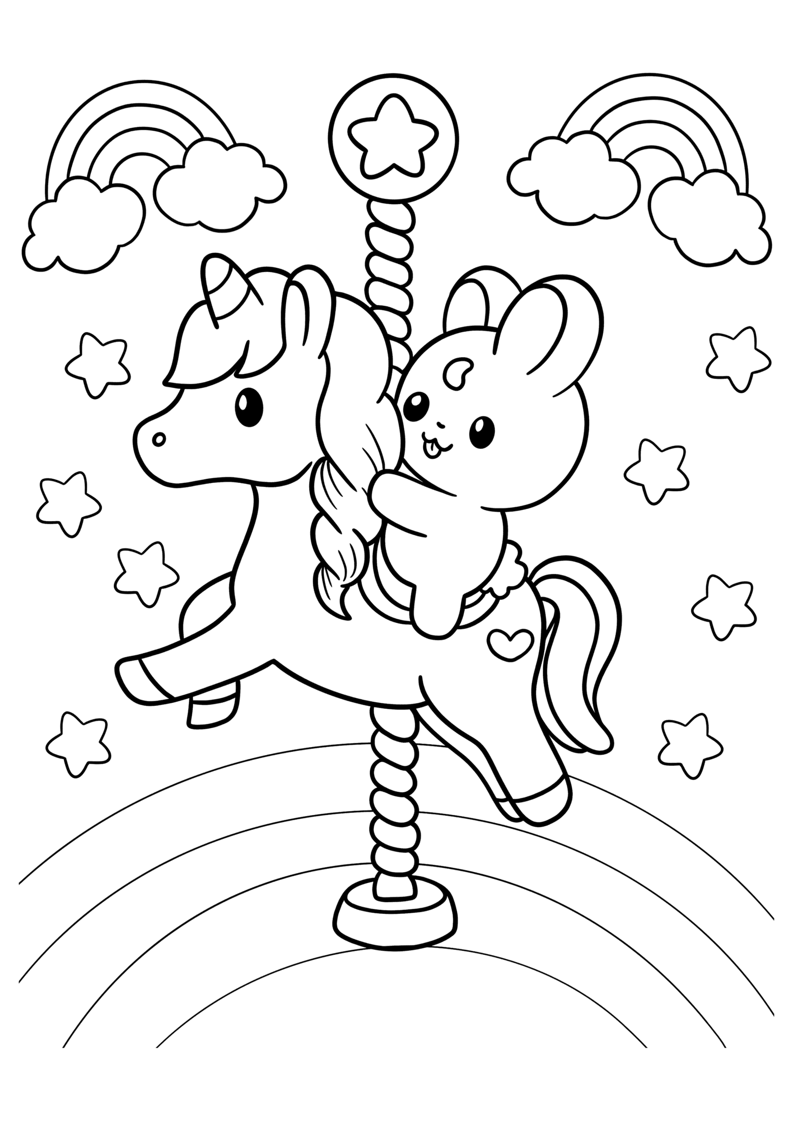 Home » Unicorns » Cute bunny and unicorn on a circus carousel